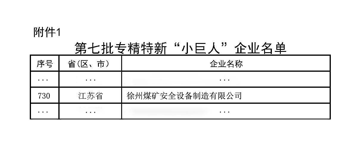 近日,根据《工业和信息化部关于公布第七批专精特新“小巨人”企业和通过复核专精特新“小巨人”企业名单的通告》(工信部企业函〔2025〕296号)精神,经严格评审与公示,徐州煤矿安全设备制造有限公司凭借其在煤矿安全设备领域的突出创新能力、专业技术实力和市场竞争优势,成功入选第七批专精特新“小巨人”企业名单,光荣跻身优质中小企业行列。